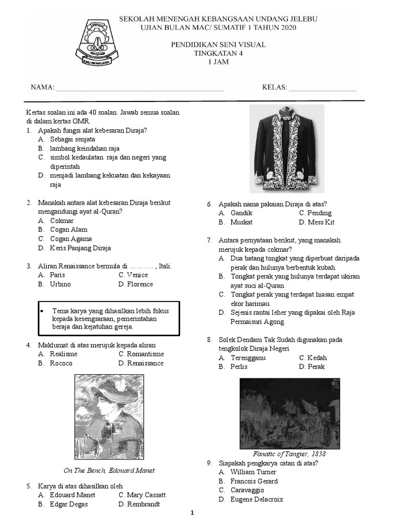 Questions exercises notes modules. PAT Pend Seni Visual Tingkatan 2 KSSM.